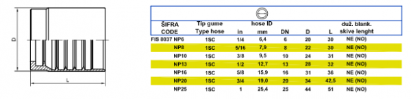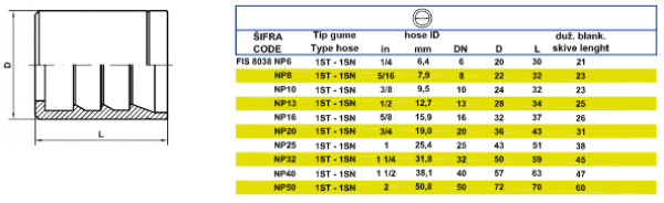 Ferrules type: H t Ä , 1SN, 1ST, 2SN, 1SC, 2SC