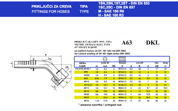 Fittings for Hose 1SN,2SN,1ST,2ST - DIN EN 853 1SC,2SC - DIN EN 857 TYPE M - SAE 100 R6 H - SAE 100 R3