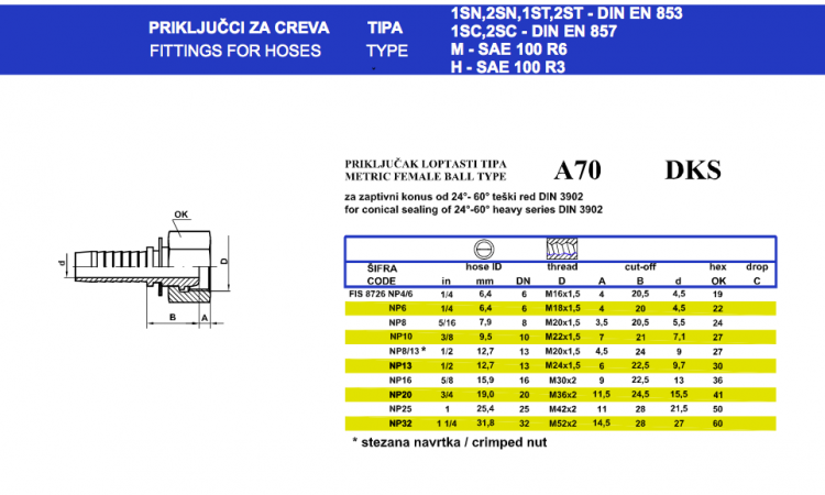 Ferrules for hose 1SN,2SN,1ST,2ST - DIN EN 853 1SC,2SC - DIN EN 857 M - SAE 100 R6 H - SAE 100 R3
