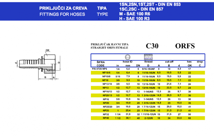 Fittings for Hose 1SN,2SN,1ST,2ST - DIN EN 853 1SC,2SC - DIN EN 857 M - SAE 100 R6 H - SAE 100 R3 C30