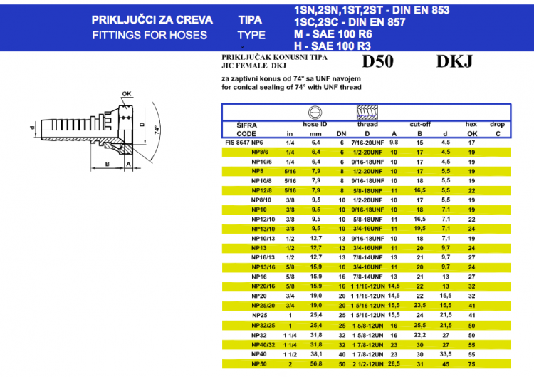 Fittings for hose 1SN,2SN,1ST,2ST - DIN EN 853 1SC,2SC - DIN EN 857 M - SAE 100 R6 H - SAE 100 R3 D50 DKJ