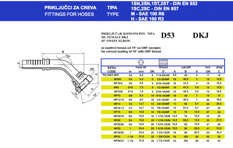 Fittings for hose 1SN,2SN,1ST,2ST - DIN EN 853 1SC,2SC - DIN EN 857 M - SAE 100 R6 H - SAE 100 R3 D53 DKJ