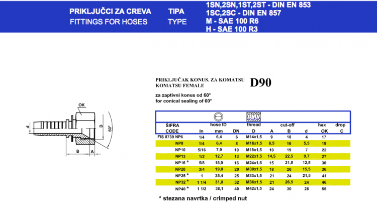 Fittings for Hose 1SN,2SN,1ST,2ST - DIN EN 853 1SC,2SC - DIN EN 857 M - SAE 100 R6 H - SAE 100 R3 D90