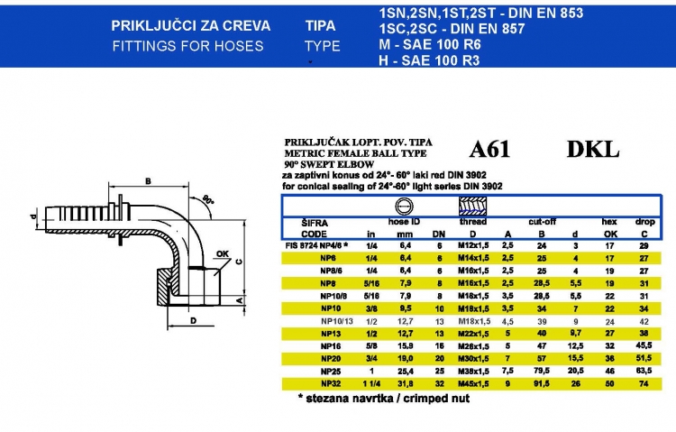 Fittings for Hose A61 DKL