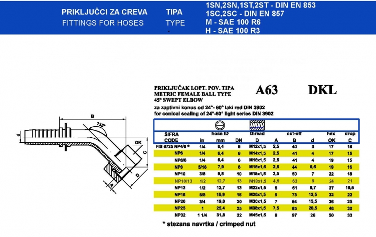 Fittings for Hose A63 DKL
