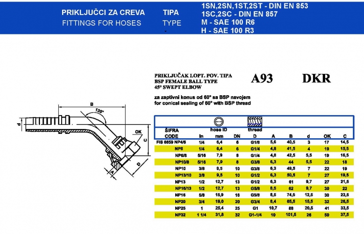 Fittings for Hose A93 DKR